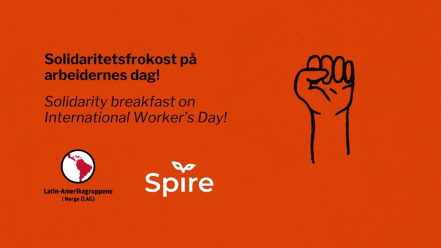 Spire and The Norwegian Solidarity Committee for Latin America (LAG) invite you to an inclusive celebration of May 1st! International Workers’ Day is one of the most important days of the year, and this year we want to place an even greater focus on building community and creating openness.We will meet at 09:30 at Samisk hus (Dronningens gate 8).
