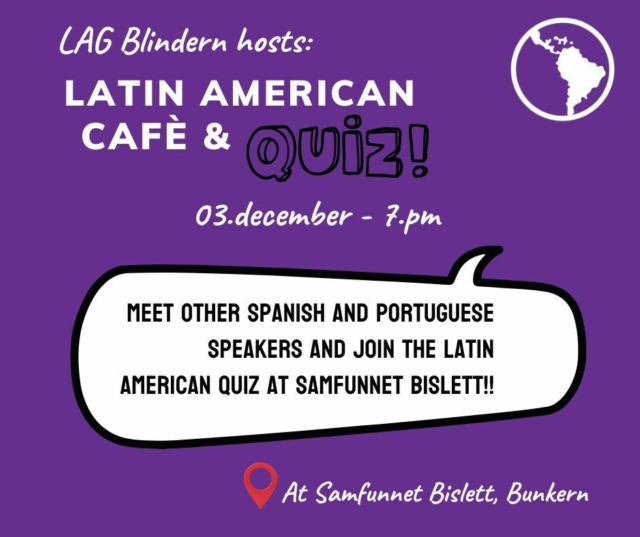 We are excited to invite you to our Latin American Café and Quiz, in collaboration with Samfunnet Bislet!