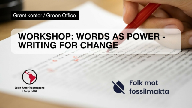 As part of the Green Office Energy Transition Week, Folk mot Fossilmakta and Latin-Amerikagruppene are joining forces to host a hands-on workshop on writing as a tool in activism.